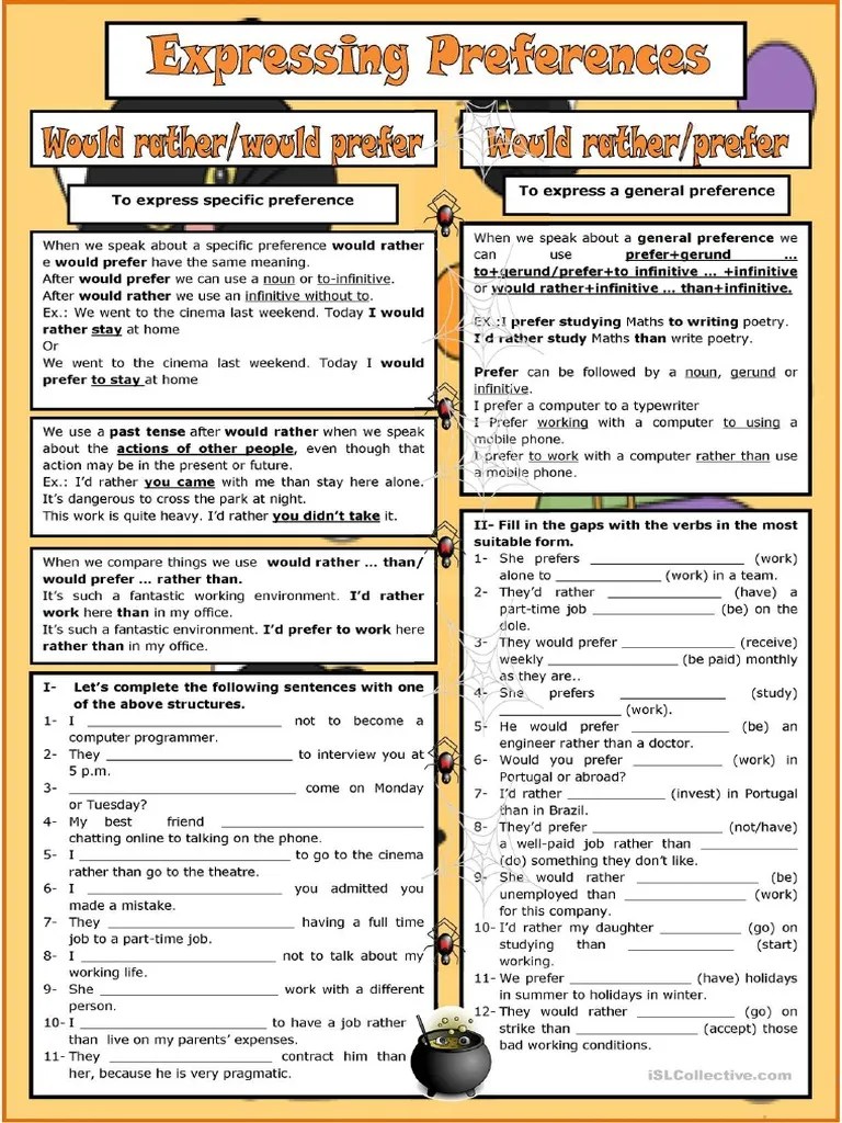 Put the words in bracket into the correct form. · i prefer speaking english to listening to music · i prefer to speak now · i'd rather . (saya lebih baik pergi sekarang). Kumpulan soal subjunctive dan preference dalam bahasa inggris beserta kunci jawaban lengkap simak tuntas di sbi. Prefers ketika subjeknya he/she/it, seperti beberapa contoh berikut ini.